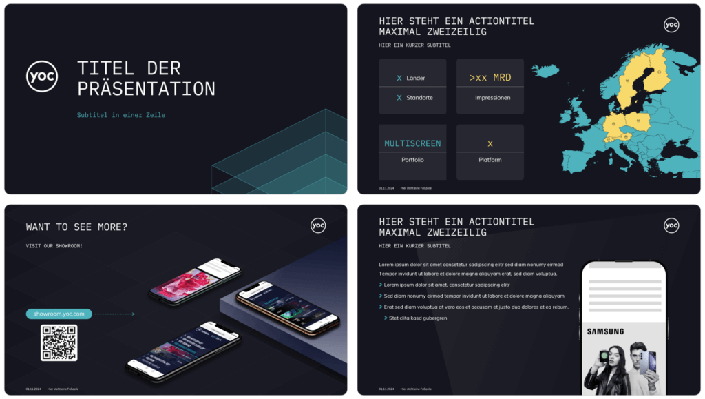 Als PowerPoint Dienstleister erstellen wir für Sie ein individuelles und branchenspezifisches Folientemplate in Ihrem Corporate Design, welches Ihnen nach außen hin ein geschlossenes Auftreten ermöglicht und dass Sie dann auch für zukünftige Präsentationen nutzen können. Dabei können wir Ihr bestehendes Folienlayout optisch aktualisieren oder auch grundlegend neu entwickeln.