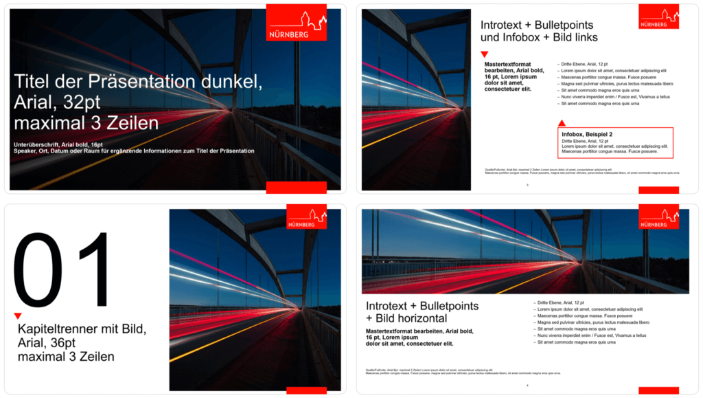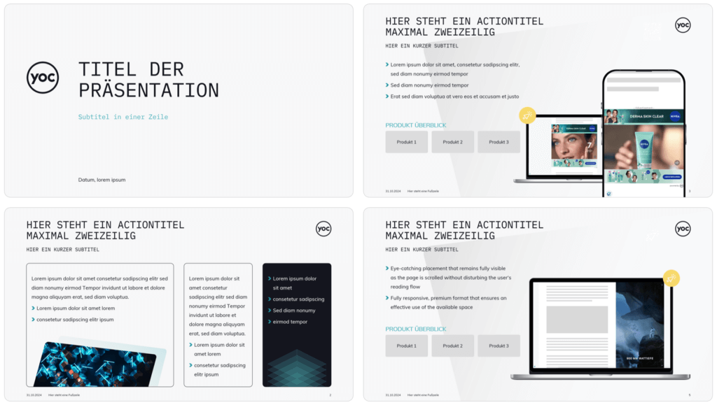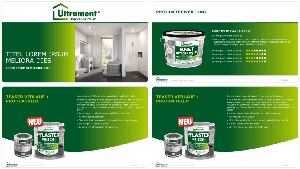 Wir stellen ein einheitliches Auftreten Ihres Unternehmens durch die gekonnte Integration Ihres Corporate Designs sicher und erstellen Masterlayouts, die sowohl für betriebsinterne als auch für betriebsexterne Zwecke genutzt werden können. Neben der ansprechenden Gestaltung der Templates steht für uns ebenso die Benutzerfreundlichkeit im Zentrum.
